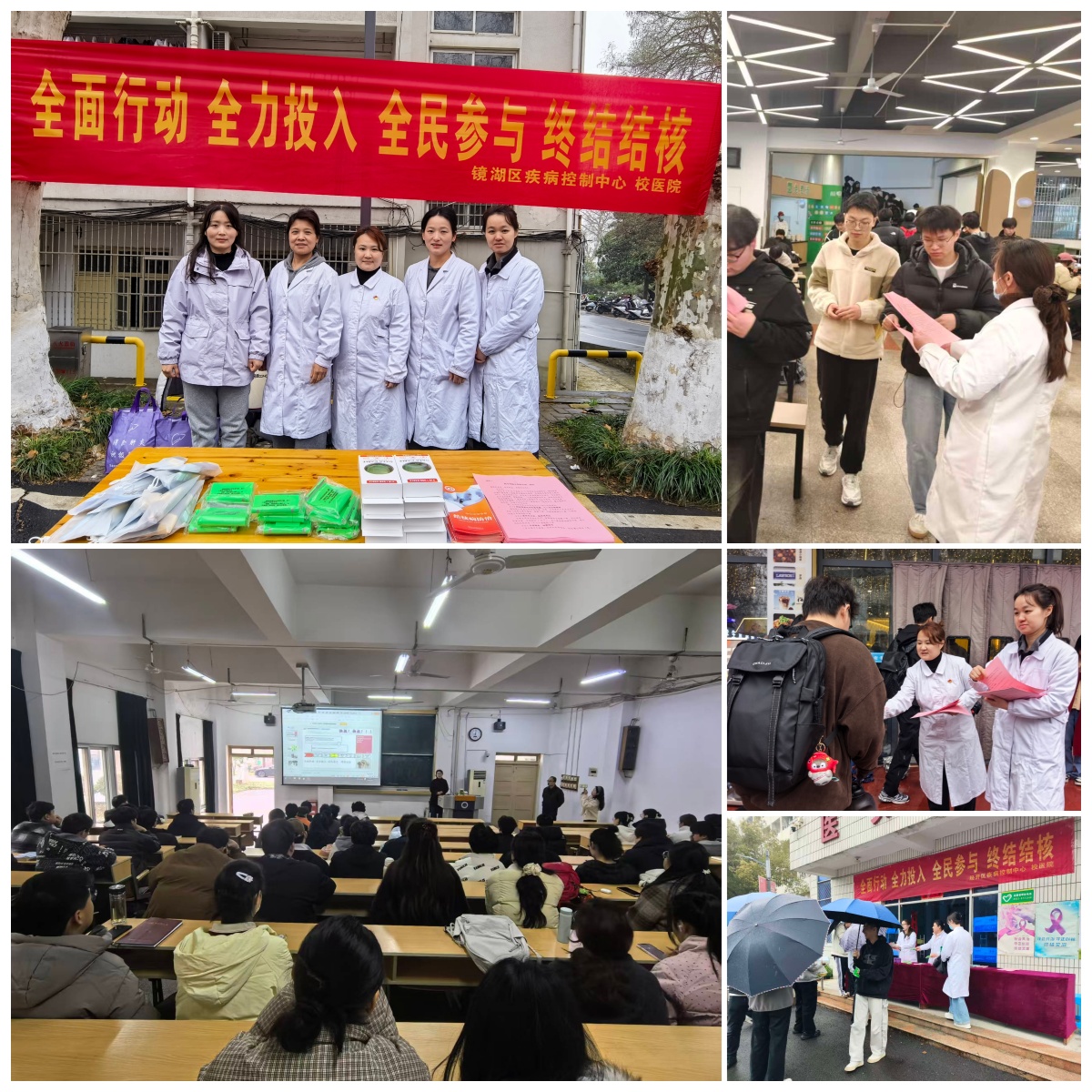 在世界结核病日来临之际,校医院围绕“全面行动 全力投入 全民参与 终结结核”主题,在花津校区、赭山校区和天门山校区同步组织开展“世界防治结核病日”系列宣传活动,活动通过主题讲座、现场宣传、信函派发与互动答题等多种形式,系统普及结核病防治知识,营造校园健康防护氛围。